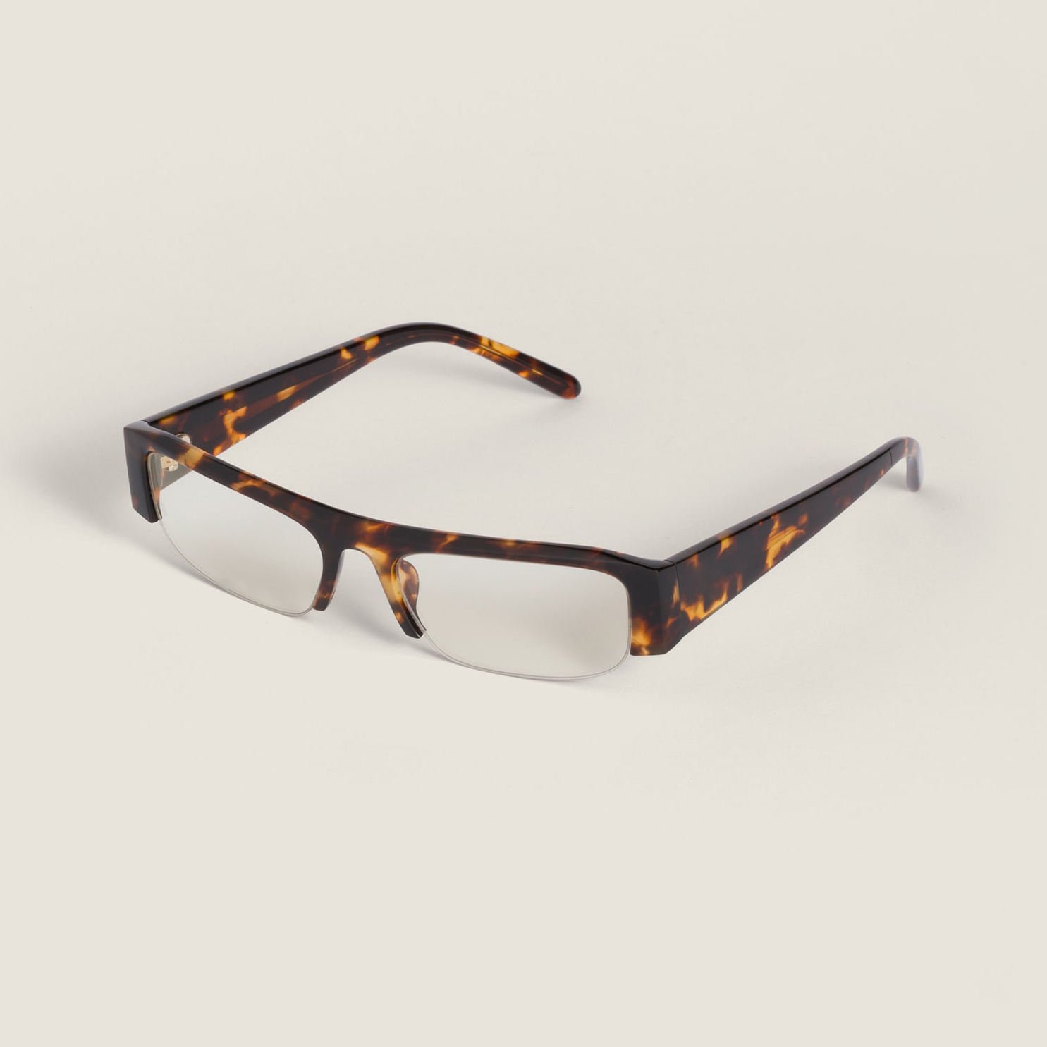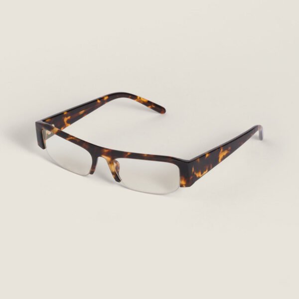 Why does the half-rim style persist in the market? It offers a sophisticated, lightweight look that full-rim frames often lack. This specific model features a retro rectangular silhouette, a shape that universally flatters most face types by adding structure and balance.